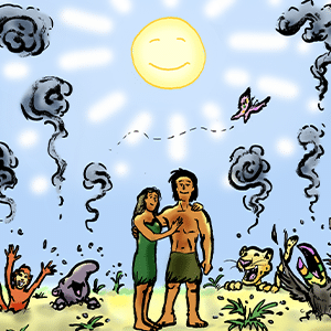 On the other side of the island one day, he noticed a pile of grass had been pushed against a group of thick trees and was pressed down in the middle. He realized that it must be where she slept at night. A bit ashamed that he had never wondered about it before, he decided to forego fishing for a few days and instead, started gathering wood and hammering it to the hut.