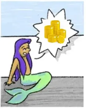 “Very well!” she said, “I suppose you want a bag of gold coins. I happen to know of a sunken ship not far from here with such treasure.”