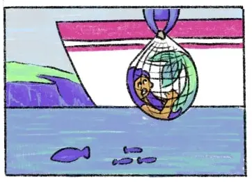 So the fisherlad freed the mermaid from the net, took her magic ring and placed it in a jar on his mantle in his hut. He decided to scratch the wood to keep track of every day that went by.