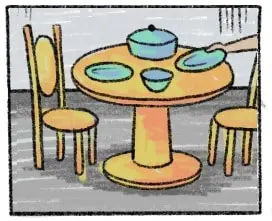 One day he had an especially good day at sea. The fish were plentiful and his catch sold well at market. He came home earlier than usual and found the girl still in his hut.  She was startled and started to leave. He said, “Please, don’t go so quickly. Let me grab you a plate. We might as well eat together.”