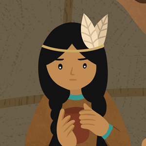 Before sunrise the next morning, the brothers left to hunt. But the girl did not tend to her usual tasks. She cleared the wigwam and piled each bearskin that she and her brothers slept upon in a single pile in the center. Beside the bearskin pile, she laid baskets filled with berries and fruit. She gathered fresh firewood, then sat by the fire and waited.