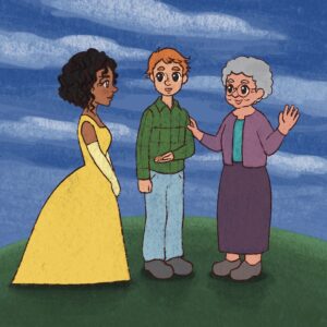 “I know what I’ll do,” he decided at last, “I’ll bring her to my grandmother’s house.” He turned to the princess and explained that his grandmother would take good care of her, but that if there was any other place she would rather go, he said he would bring her to it, if he could.