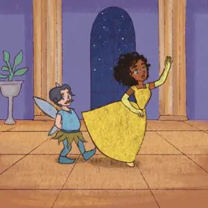 Then Guleesh told the whole story to his grandmother, about how he had gone off in the night with the fairy men and how before he knew it they had kidnapped the daughter of the king of France. And how he had finally gotten her away from the nasty fairy men but then one of them had put a spell on her so she couldn’t speak anymore. And now what to do? The grandmother was so much surprised that she could not help calling out at times, or clapping her hands together.