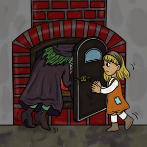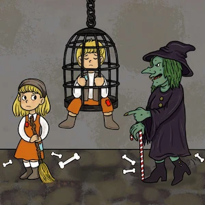 Gretel’s heart skipped a beat. If she did that, the witch could push her inside and she would eat them both! But that gave her an idea.