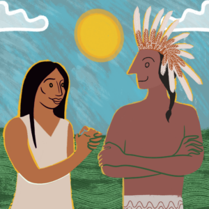That winter, John Smith could not leave Powhatan’s village. Still, the Native Americans made him feel as comfortable as a prisoner can be. Pocahontas also spent time with him. Day after day, they would teach each other the language that each other’s people spoke.