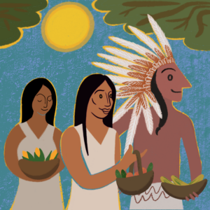 “We will bring food to them – corn, beans and squash. Without us, they will starve. Then I, Powhatan, who rules 30 tribes, will rule over them, too!”