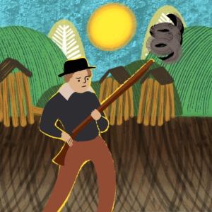 When the men in the fort understood the news, they got angry. They marched into their cabins. They came out with guns, and shot the guns into the sky. Powhatan got angry, too. He said, “I warn you, white men! Do not go anywhere near our village! If you do, you will be sorry!” The men of Jamestown could not understand what Powhatan was saying. But they could tell from his face that they were no longer friends.