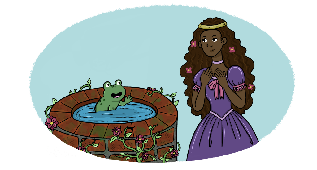 “Yes, you can!” said the Princess. She thought it was odd that a frog could talk but then again, she wanted that ball. “You can go get my ball down that well!”