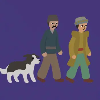 Saying farewell to the King’s son, Anait took her jug and walked away. The prince, his trusty servant Nazar, and his dog returned home.