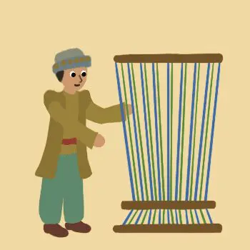 At that moment Anait entered the tent, carrying a basket of ripe fruit. She bowed to the guests, placed the fruit on a tray, served it and then sat down at her loom. The noblemen watched her closely and were astonished at the speed with which her fingers flew back and forth, weaving the design.