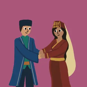 The Queen was alarmed at the prospect of her son’s marrying a shepherd’s daughter. Her husband, the King, could not agree more. But Vatchagan wouldn’t hear of seeking any other bride. Finally, the King and Queen reluctantly accepted his choice. They sent their son’s faithful attendant Nazar and two noblemen to Atzik to ask the shepherd Aran for the hand of his daughter.