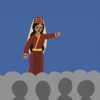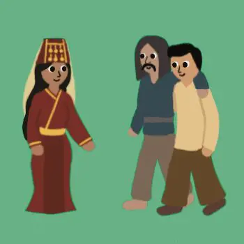 One day Queen Anait said to her husband, “My King, I notice that people say that everything is well in our kingdom, but what if they do not speak the whole truth? From time to time perhaps you should inspect the country yourself, going around in disguise. You could disguise yourself sometimes as a beggar and sometimes as a worker or merchant.”