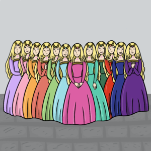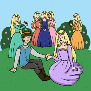 Imagine the surprise of Prince Miliflor when he arrived and was presented to twelve of the most charming creatures he had ever seen.