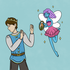 She, you may recall, was the Fairy who had determined to bring up the faithless prince. She had her sights fixed on a certain Prince Miliflor. As it turns out, Prince Miliflor’s father was a friend of the king whose wife had discovered the twelve baby princesses. When Prince Miliflor was born, Fairy Flight had bestowed on him all the graces of mind and body that a prince could possibly wish. But now she doubled her efforts and spared no pains in adding every imaginable charm and fascination. So that whether he happened to be cross or cheerful, dressed in the most luxurious royal fineries or simplest robes, whether he was serious or light-hearted, he was always perfectly irresistible!