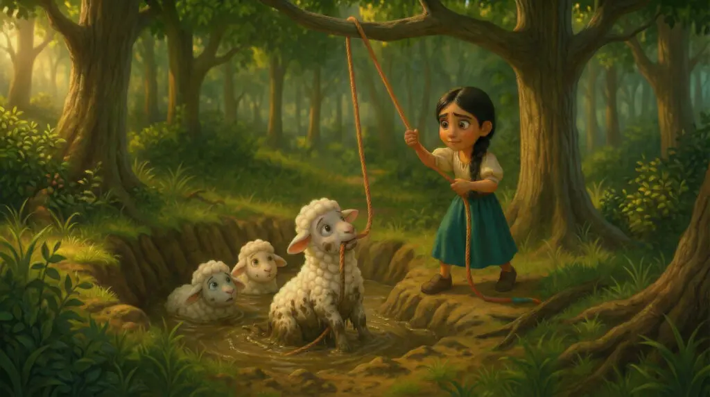 One by one, Sofia pulled the other two sheep free, her legs, arms, and nearly every muscle in her body shaking from the effort. But soon the three sheep were all safely on the grass.