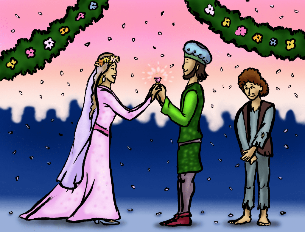 “Grant me, Sire, the hand of the Queen, your niece,” stated the young man, bowing low.