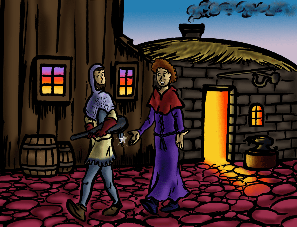“I know what sort of weapon I shall use. Come with me.” Taking his friend by the arm, Stefan led Geirald into a shop where he bought a huge lump of solid iron, so big that they could hardly lift it between them.