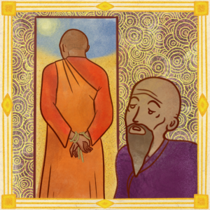 The soldiers roughly pushed the hermit. “You had better not lie to the Khan’s soldiers!” the captain threatened.