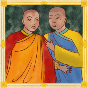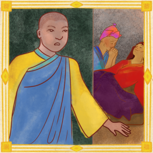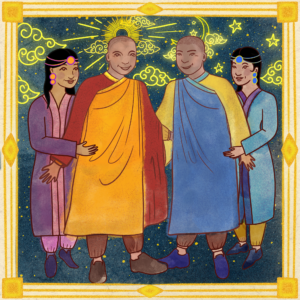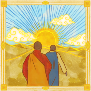 LONG YEARS AGO, there lived in a distant land we now call Tibet a handsome Prince named Sunlight. Sunlight lived in a splendid palace with his father, the ruler of the land, called a Khan. Sunlight’s mother had died when he was a baby, and when he was a young boy his father married again. So Sunlight also lived with his stepmother, the Queen, along with her son, a lad named Moonlight.