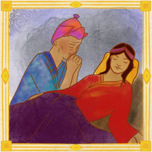 The Khan was so relieved that his daughter had survived the sentence he had set upon her, that on his daughter’s urging, he invited Sunlight to come back to the palace. Soon after Sunlight arrived, and as perhaps you might suppose, a great royal wedding took place before long for Sunlight and the Princess, as they came to love each other even more than they thought possible.