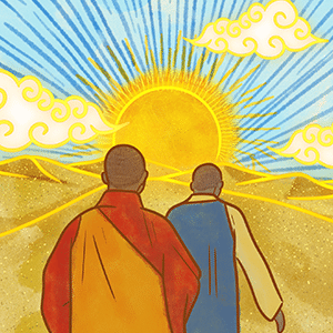LONG YEARS AGO, there lived in a distant land we now call Tibet a handsome Prince named Sunlight. Sunlight lived in a splendid palace with his father, the ruler of the land, called a Khan. Sunlight’s mother had died when he was a baby, and when he was a young boy his father married again. So Sunlight also lived with his stepmother, the Queen, along with her son, a lad named Moonlight.