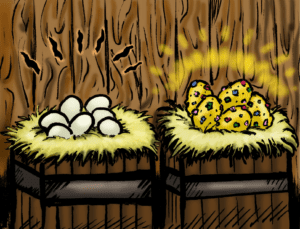 With glee, Millison rushed into the chicken-house. Like before, the plain-looking ones called, “Take me, take me!” while the dazzling, golden eggs were the ones that called, “Don’t take me!”
