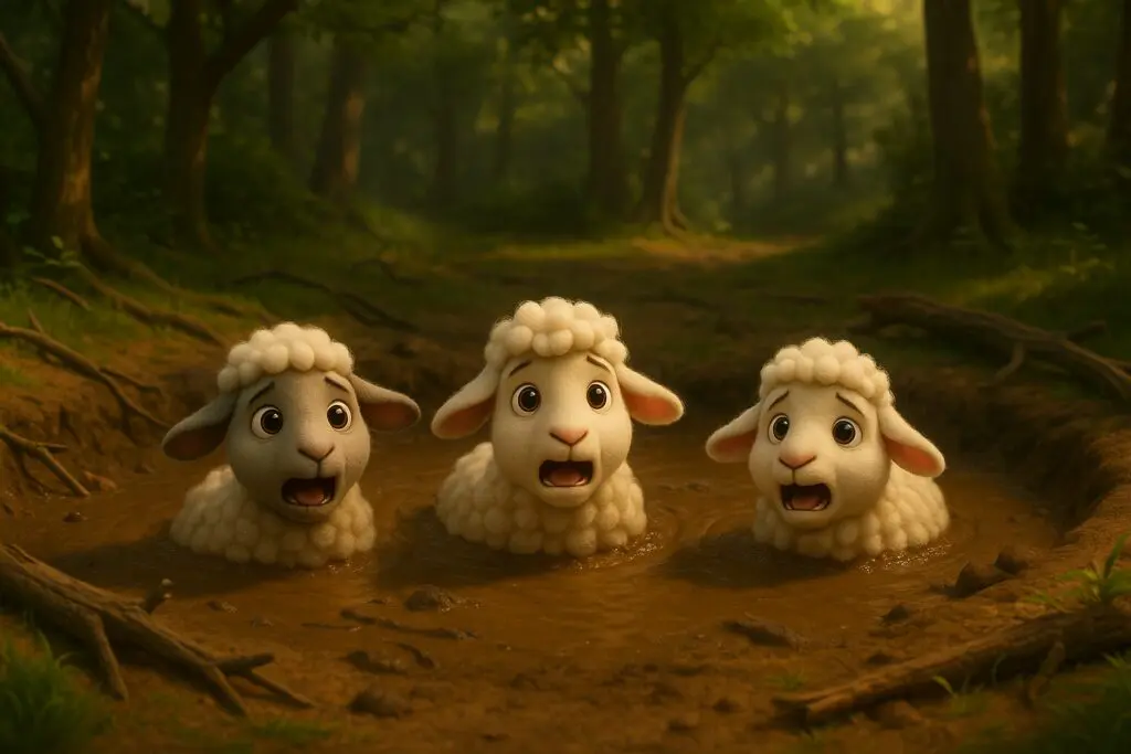 “Clara! Carmen! Camilla!” The sheep joyfully bleated at the sight of their mistress. Clara tried to scramble out of the pit, but she slipped and slid right back down.