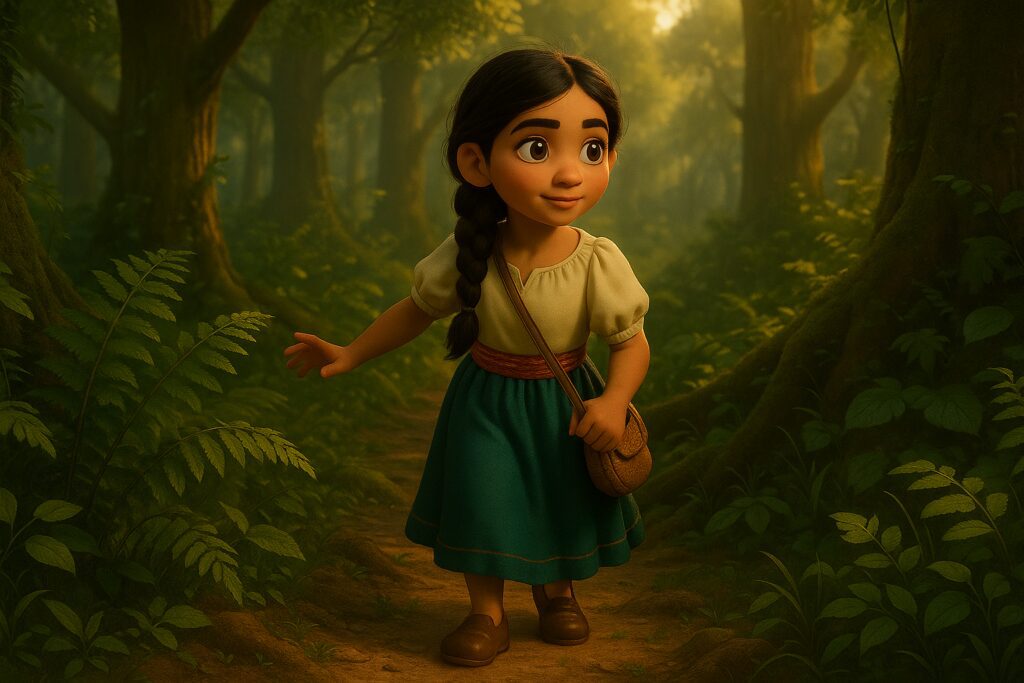 In a green valley in the Colombian hillside, a young shepherdess named Sofia waved goodbye to her Mama and Papa.