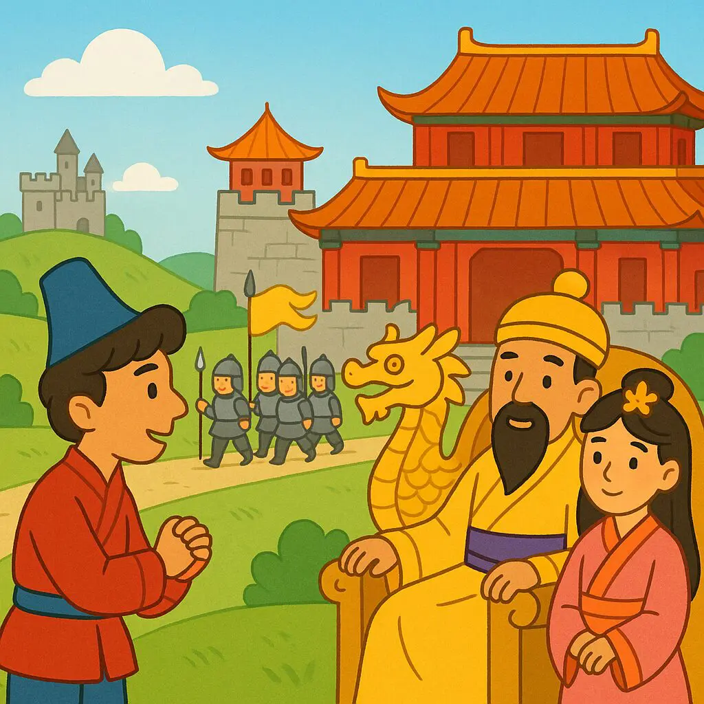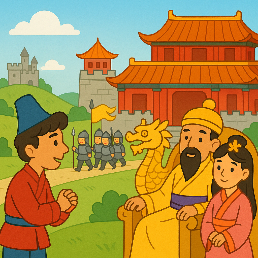 “Excellent!” said the Emperor, now excited by this turn of events. “Out with it then, young man.”